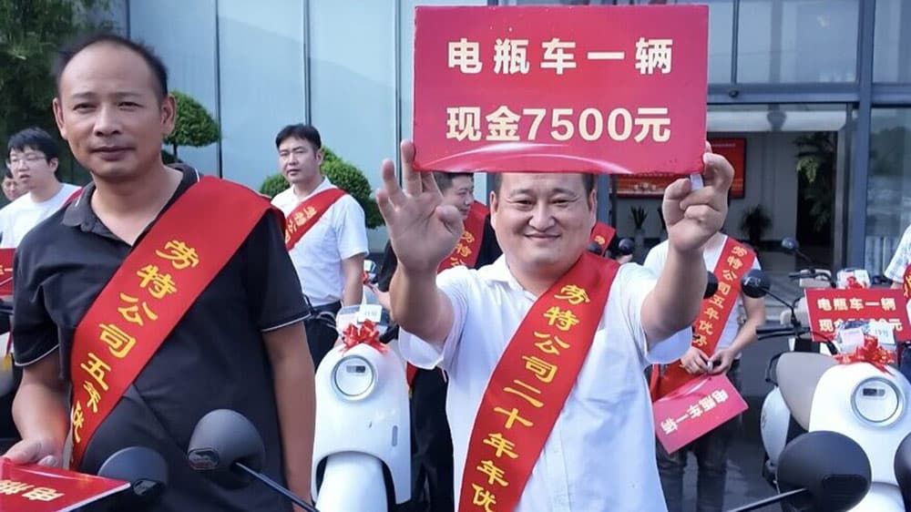 3、A reward of an electric bike and 5,000 yuan in cash will be given to those who have served for 15 years.